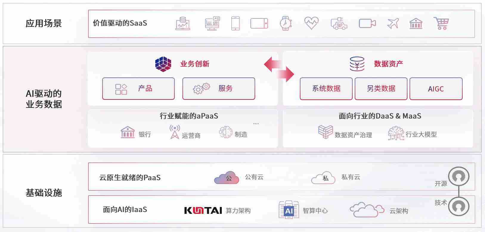 数字时代,,,围绕企业数字化转型的关键要素,,CG钱包数码开创性的提出数云融合战略和技术体系框架,,,着力在云原生、、、数字原生、、AI原生和信创产业上架构产品和服务能力,,,,为处在不同数字化转型阶段的快消零售、、、汽车、、、、金融、、、医疗、、政企、、教育、、、运营商等行业客户提供泛在的敏捷IT能力和融合的数据驱动能力,,,,构建跨界融合创新的数字业务场景和新业务模式,,,,助力企业级客户建立面向未来的核心能力和竞争优势,,,,全面推动社会的数字化、、、智能化转型升级。。。。