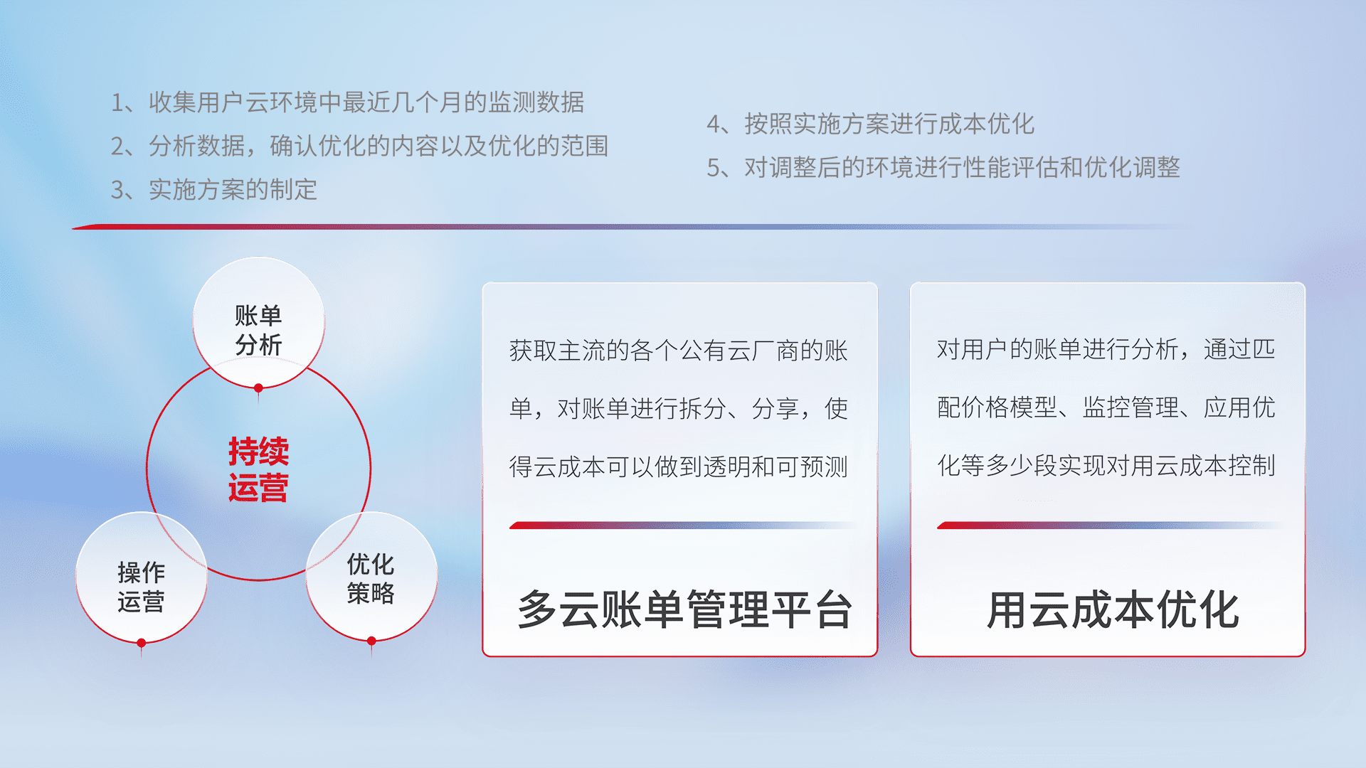监控业务系统资源开销,,,对资源的消耗精确计量,,实现费用的透明化管理,,不断提升资源使用率,,调整资源购买方式,,,,降低资源费用成本,,,用云成本可预测、、、用云费用可优化,,云资源配额有据可依。。